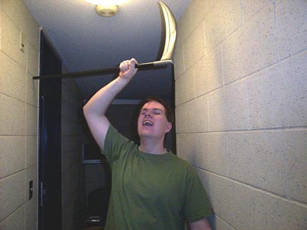 Kyle poses with an implement of destruction.