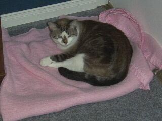 Georgi hanging out with her pink blanket.